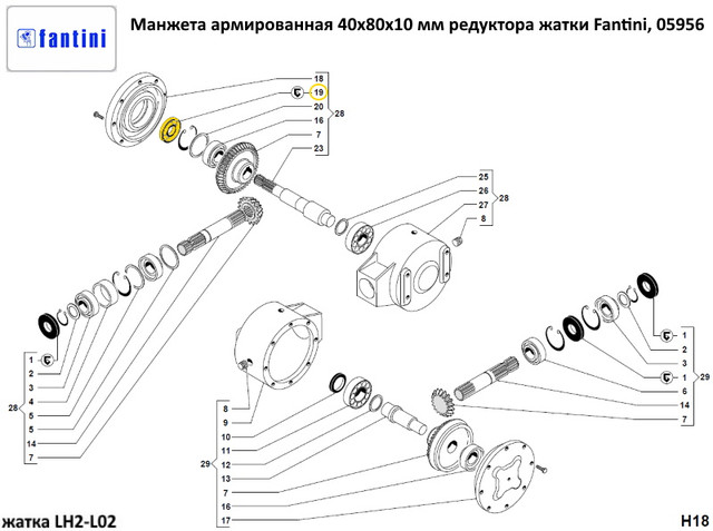 Манжета армированная 40х80х10 мм редуктора кукурузной жатки Fantini, 05956