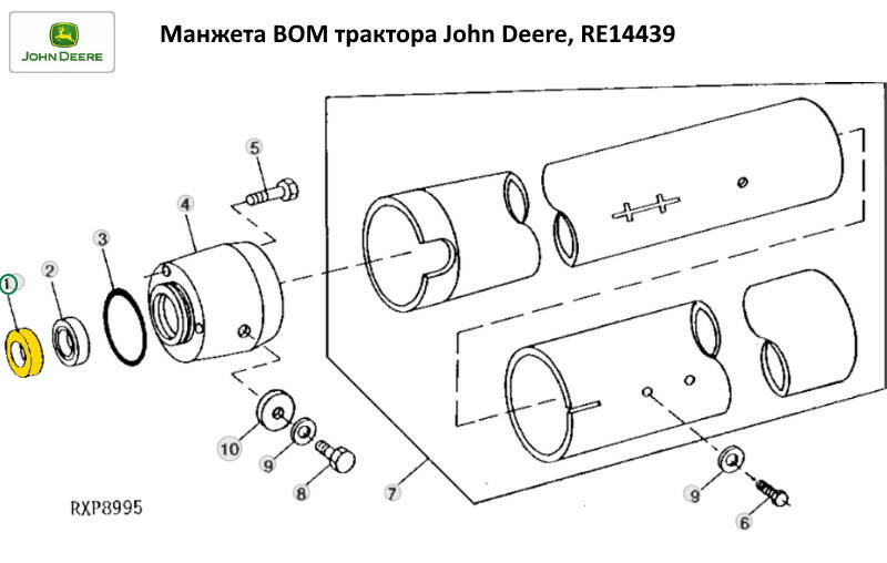 Манжета ВОМ трактора John Deere, RE14439 49,23х68,22х7,62
