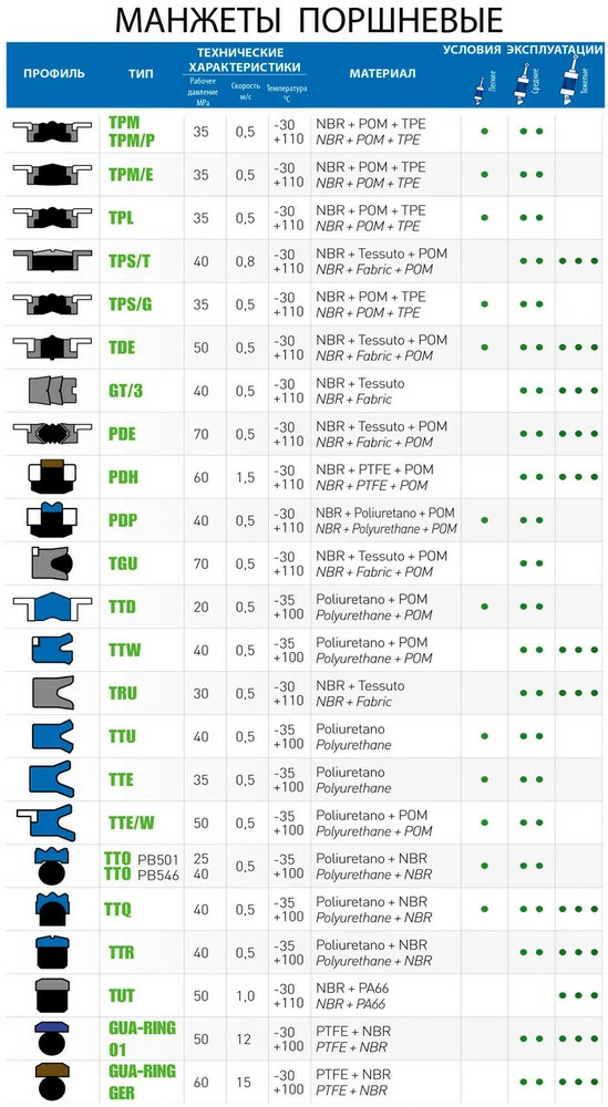 Гидравлические уплотнения и манжеты, сальники и резиновые
