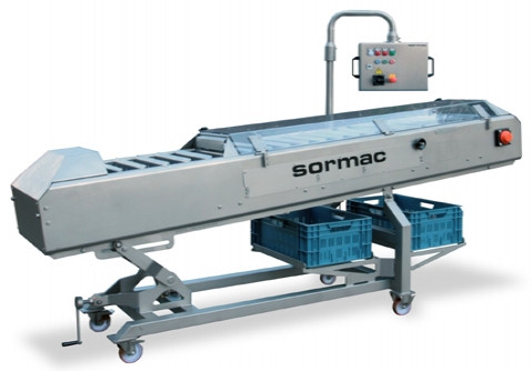 Поштучно морковь размещается между витками вручную или подается из очистительного оборудования, например, очистительное оборудование ножевого типа KP-60/HS компании Sormac. Центрирующие ленты перемещают морковь сначала влево, а потом вправо от направляющей планки, где у моркови обрезаются черенки и хвостики в зависимости от ее положения. Во время последнего цикла обработки морковь нарезается на кусочки. Черенки и хвостики удаляются из оборудования отдельно от конечного продукта.