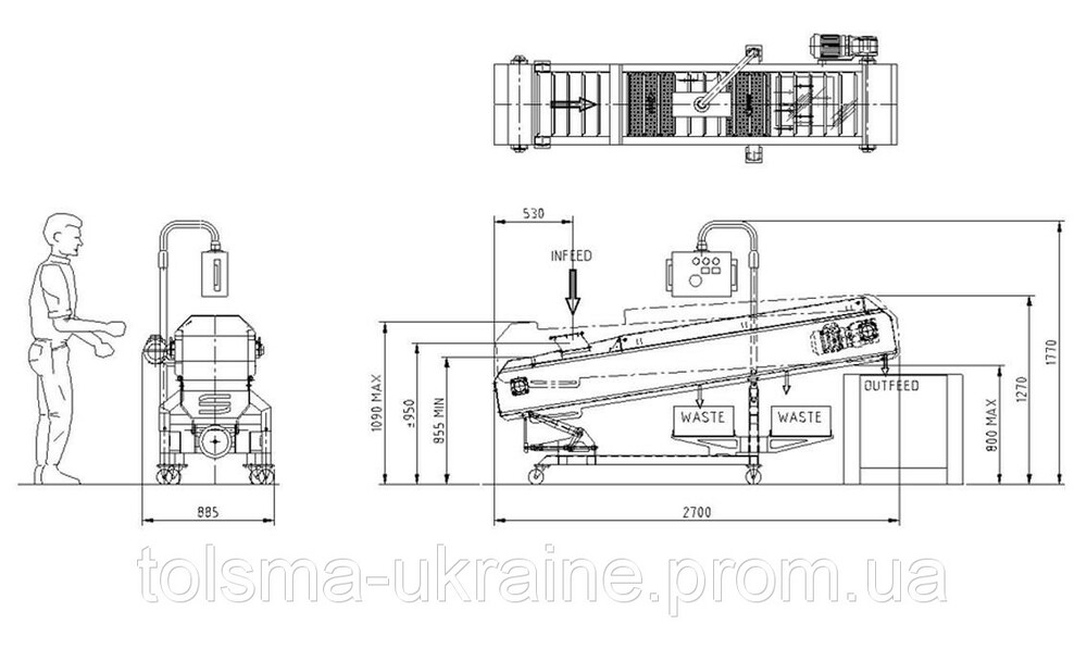 > бункер подачи для установки в сочетании с очистительным оборудованием ножевого типа KP-60/HS компании Sormac