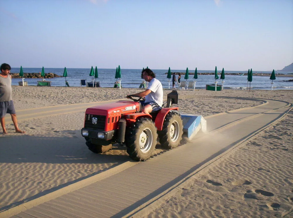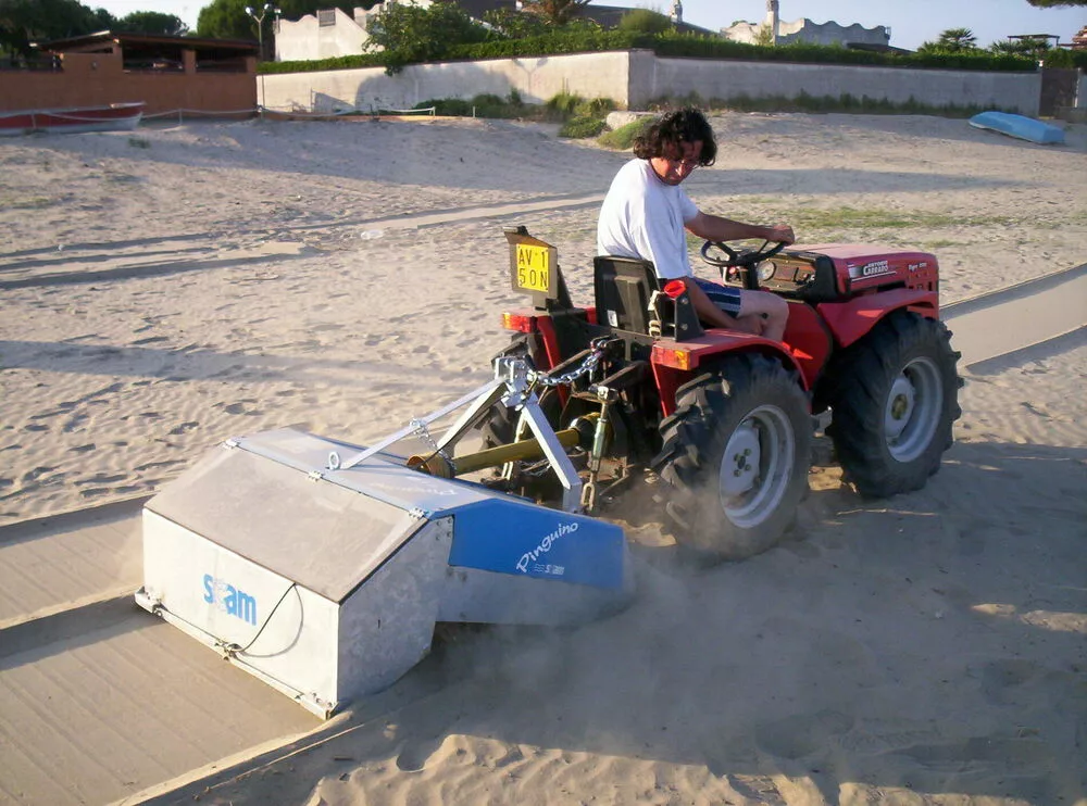 Тракторно-буксирувана машина для прибирання пляжу, малогабаритна, підходить для використання з тракторами з повним приводом (24-30 к.с), ідеально підходить для прибирання піщаних територій (пляжі, бункери полів для гольфу, дитячі майданчики, майданчики для пляжного волейболу тощо).