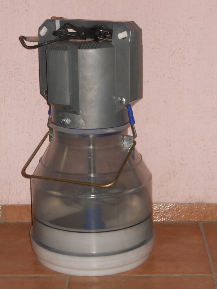 Благодаря двум застежкам, которые фиксируют  емкостной бак с электроприводом и рабочими органами пищевой бак легко отделяется. Наша маслобойка надежная и гарантирует полное взбивание масла из залитых сливок или сметаны.