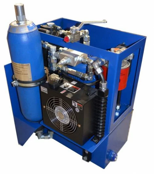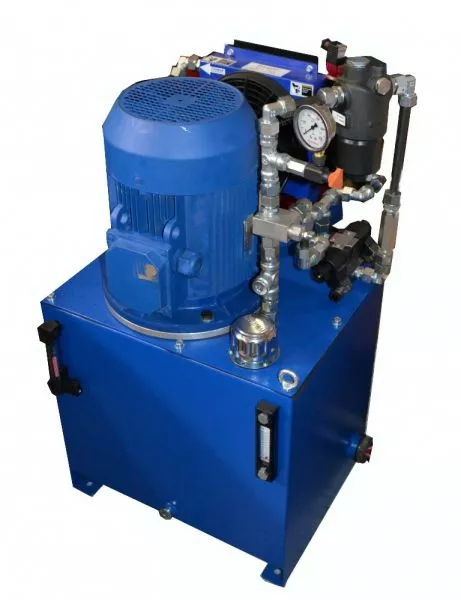 Как элемент питания в гидроприводах используют различные по характеристикам и комплектации маслостанции (гидростанции), задачей которых является преобразование электрической энергии в уже механическую энергию жидкости и дальнейшего направления ее в исполнительные элементы гидропривода.