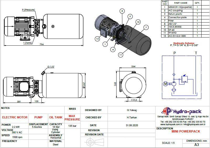Сердцем данной установки служит насос модели 10C5.8X302, который обеспечивает поток в 5,8 куб. см за оборот при скорости в 1500 об/мин, достигая давления в 135 бар. Благодаря этим параметрам, гидравлическая станция HIDROS является оптимальным решением для разнообразных индустриальных задач, где критичны высокие требования к производительности и надёжности гидросистемы.