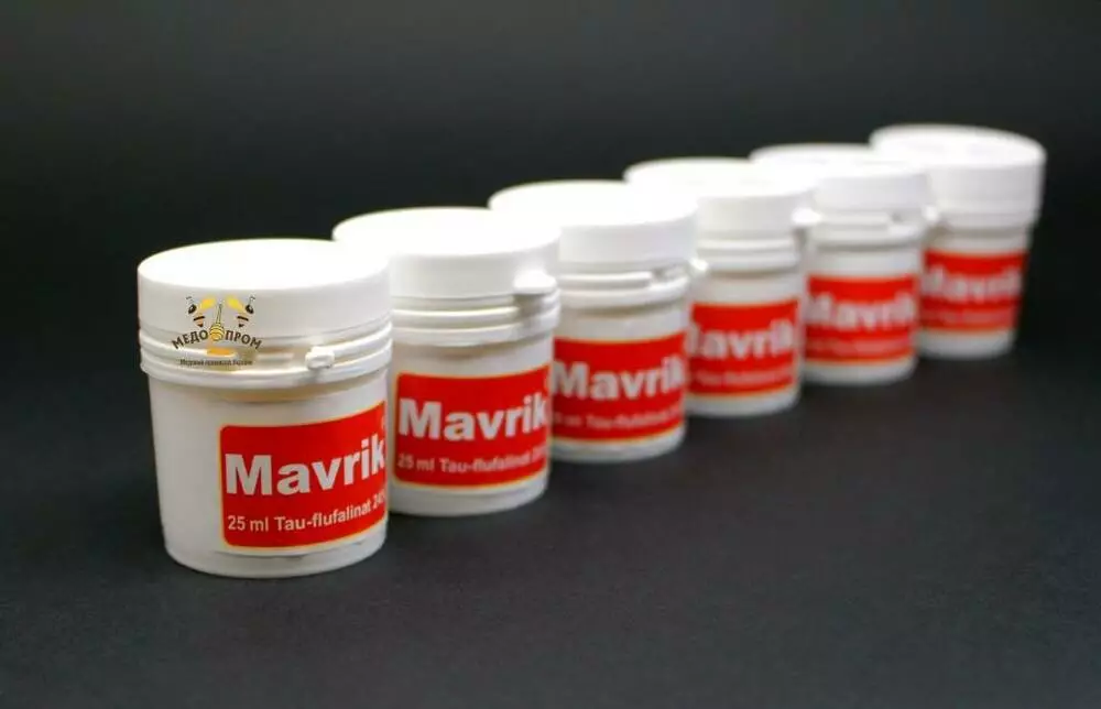 1.Рабочий раствор готовят путем растворения 1мл Маврика в 1л кипяченой воды. При поливе пчел сверху из шприца по улочкам нормы расхода рабочего раствора -10мл на 1 улочку. 1мл Маврика достаточно для обработки 100 рамок с пчелами.