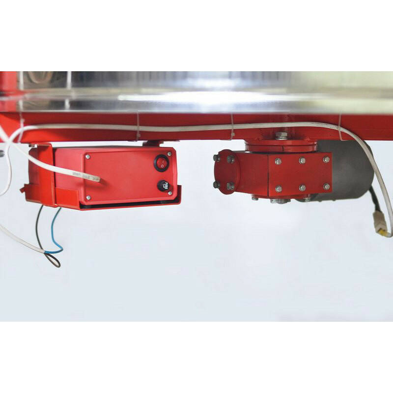 Электропривод представляет собой мотор-редуктор, насаженный на вал медогонки снизу. Питание электродвигателя – 24В постоянного тока, может производиться от сети переменного тока 220В через трансформатор-выпрямитель, установленный в нижней части медогонки, или от двух последовательно включенных аккумуляторов 12В.