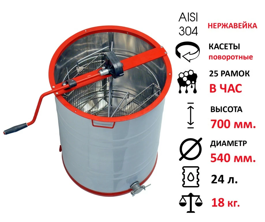 Эта медогонка станет надежным помощником для эффективной и быстрой экстракции меда, обеспечивая высокое качество и удобство в работе.