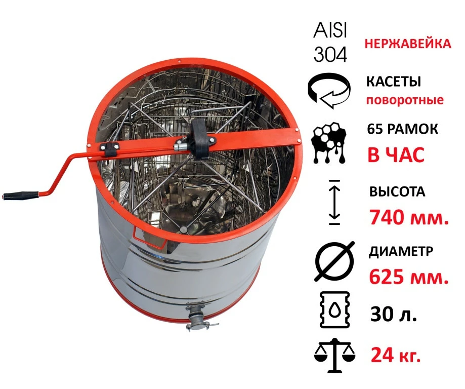 Объем меда: Вмещает до 30 литров меда между обязательными сливами, что сокращает количество остановок для слива.