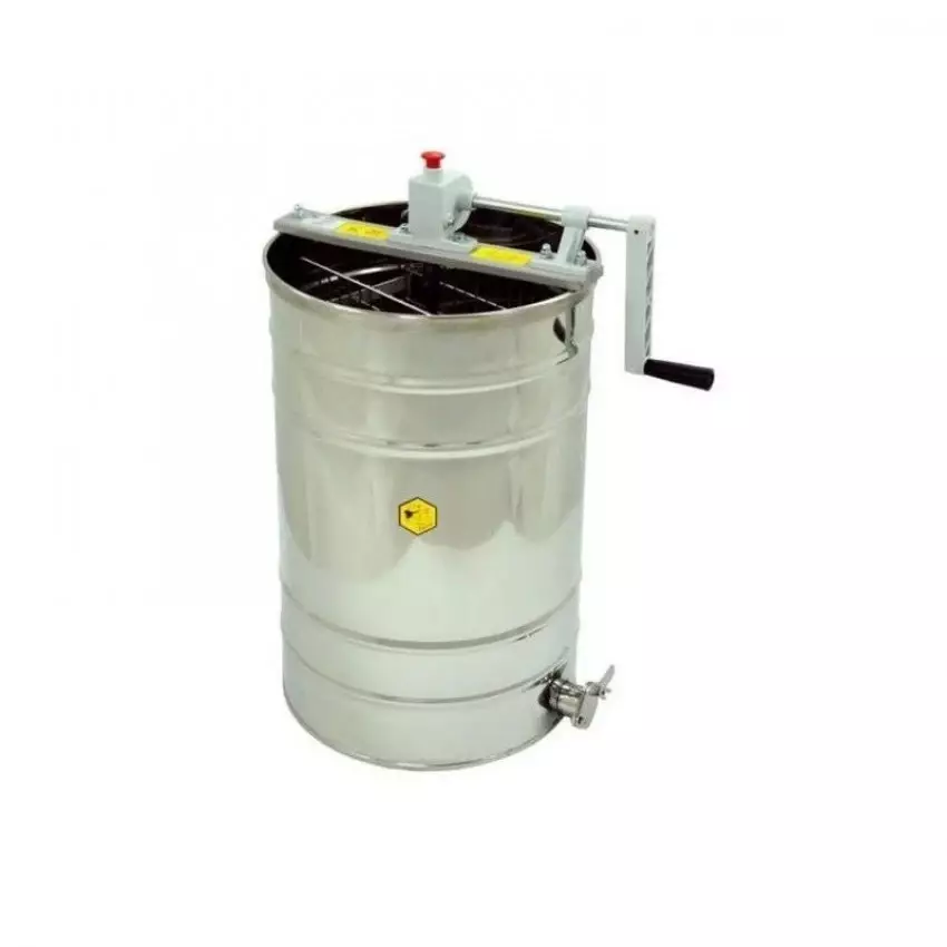 Бак и корзина медогонки полностью изготовлены из пищевой нержавеющей кислотостойкой стали 0H18N9, она не реагирует с кислотами никоим образом, то есть вообще не взаимодействует с медом. Это позволяет меду максимально сохранять свои природные вкусовые свойства.