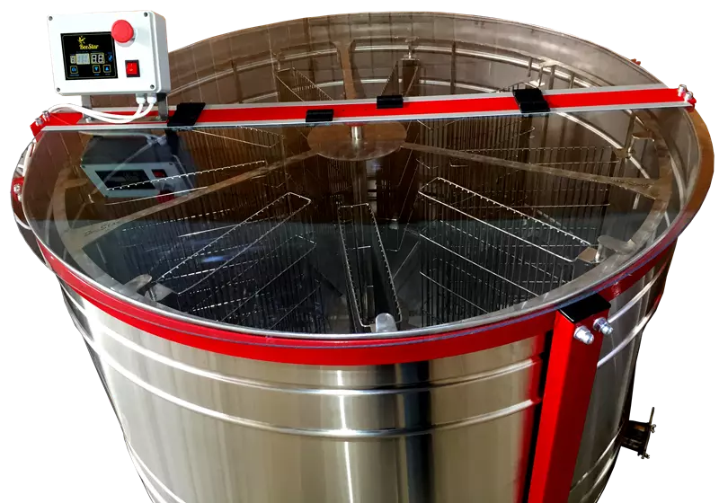 Также установлен пульт управления "BeeStar" с 9-ю записанными автоматическими программами которые можно редактировать (редактируется любая из 9 программ, инструкция по настройке и характеристики стандартных программ описаны в общем паспорте на медогонку). Стандартно в пульте записано 6 программ для радиального типа откачивания и 3 для кассетного. Программы отличаются скоростью и временем откачивания.