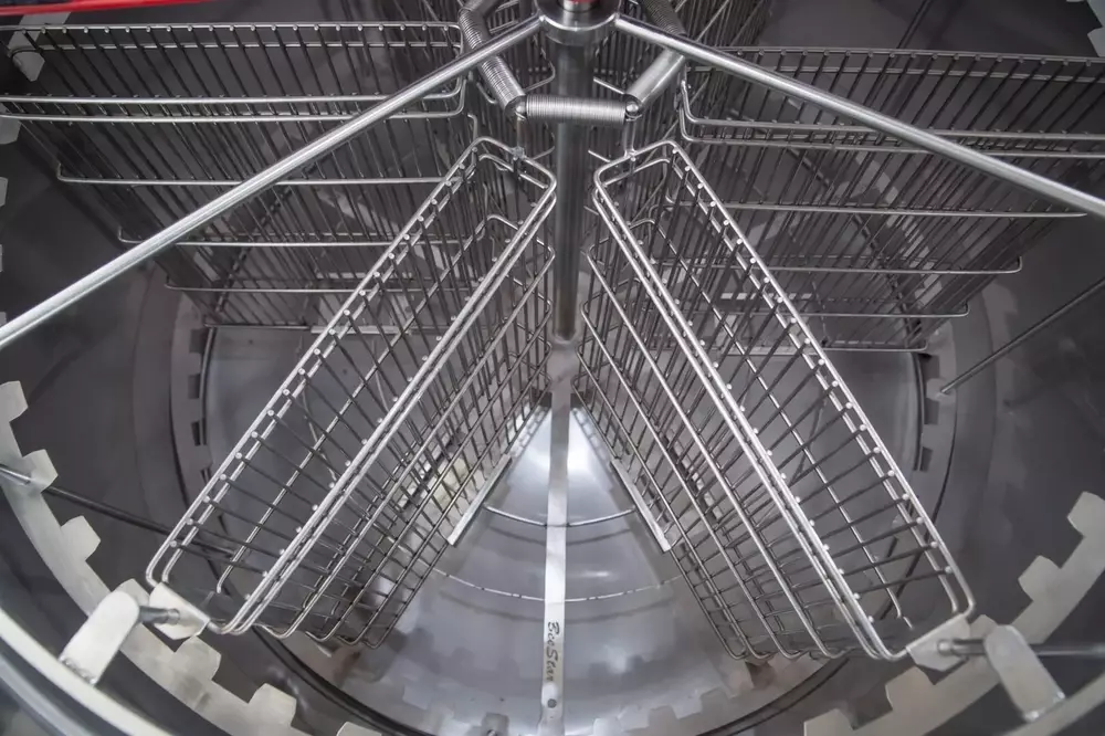 Также установлен пульт управления «BeeStar» с 6 записанными автоматическими программами, которые можно редактировать (редактируется любая из 6 программ, инструкция по настройке и характеристики стандартных программ описаны в паспорте на медогонку). Стандартно в пульте записаны 2 программы для радиального режима и 4 для кассетного. Программы отличаются скоростью и временем откачки.