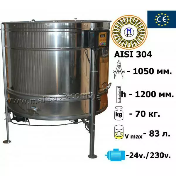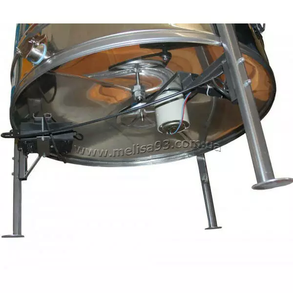 Ёмкость изготовлена из листа нержавеющей стали марки AISI304 толщиной 0,5мм. Дно емкости имеет конусообразную форму и выполнено из листа нержавеющей стали марки AISI304 толщиной 0,8мм. Жёсткость ёмкости, кроме рёбер жёсткости на поверхности, сверху усиливается уголком 25х25 из стали марки AISI304. Слив мёда осуществляется через кран Ду55 из стали марки AISI304.