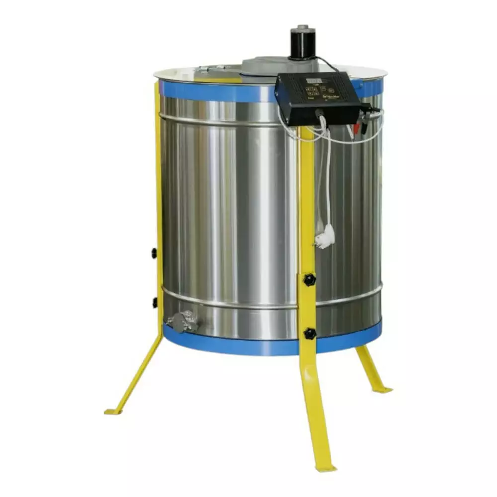 Медогонка оснащена двигателем на 12 В с плавной регулировкой оборотов и пультом управления "BeeStar" с 6 автоматическими программами, которые можно редактировать. В комплект входят 4 программы для кассетного типа откачки и 2 для радиального типа. Каждая программа отличается скоростью и временем откачки.