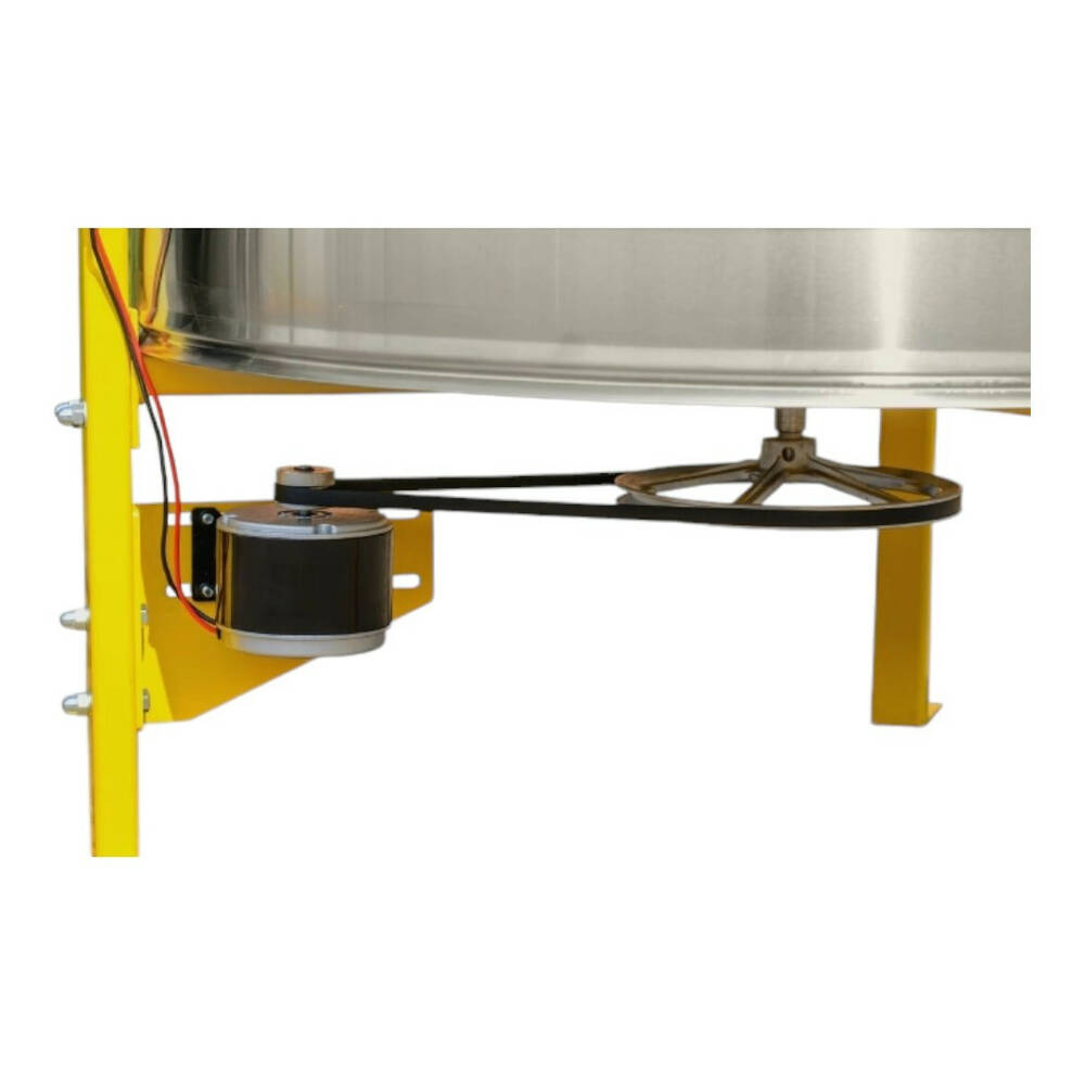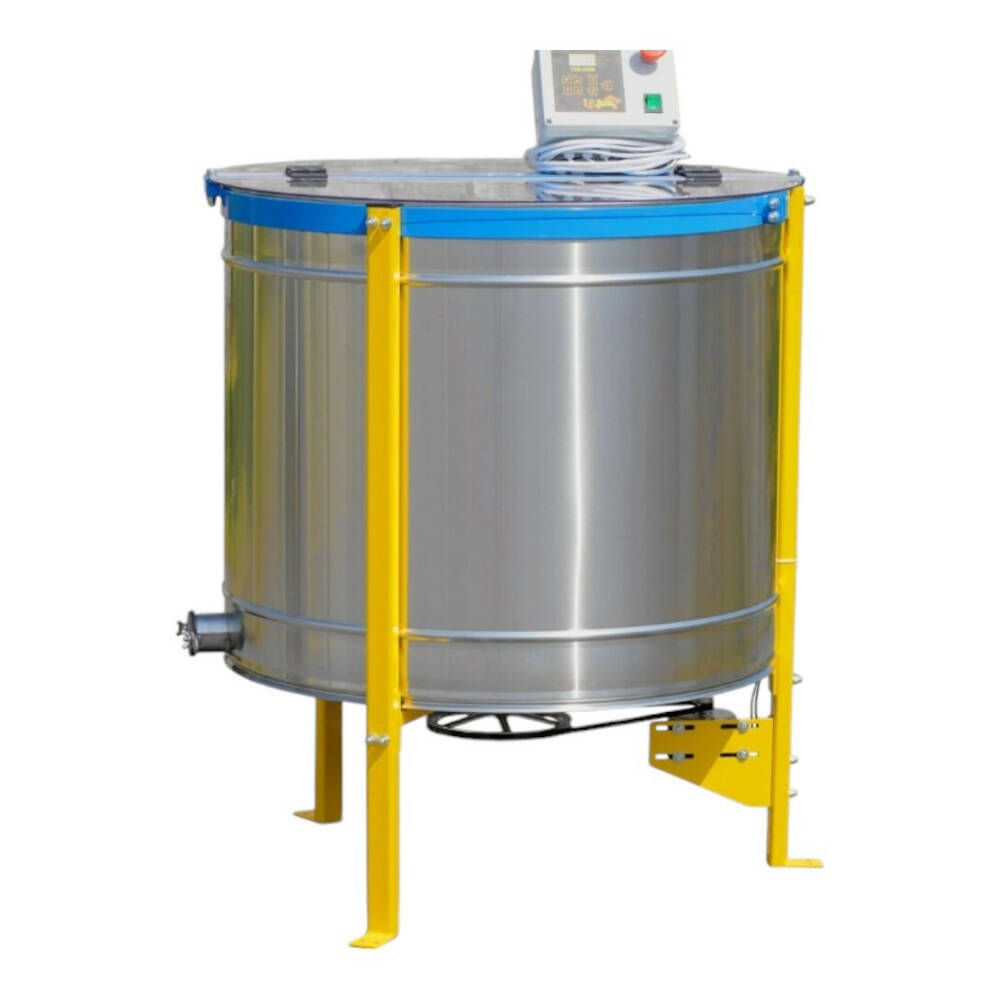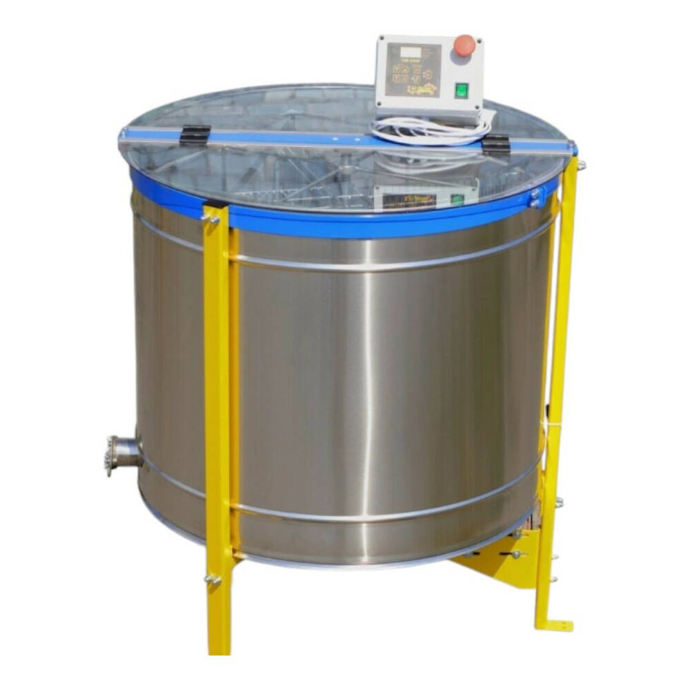 Медогонка оснащена электроприводом (двигатель, ремень, шкив) с плавной регулировкой скорости вращения. Пульт управления "BeeStar" содержит 6 автоматических программ, которые можно редактировать. В комплекте 2 программы для радиального типа откачки и 4 для кассетного. Каждая программа отличается по скорости и времени откачки.