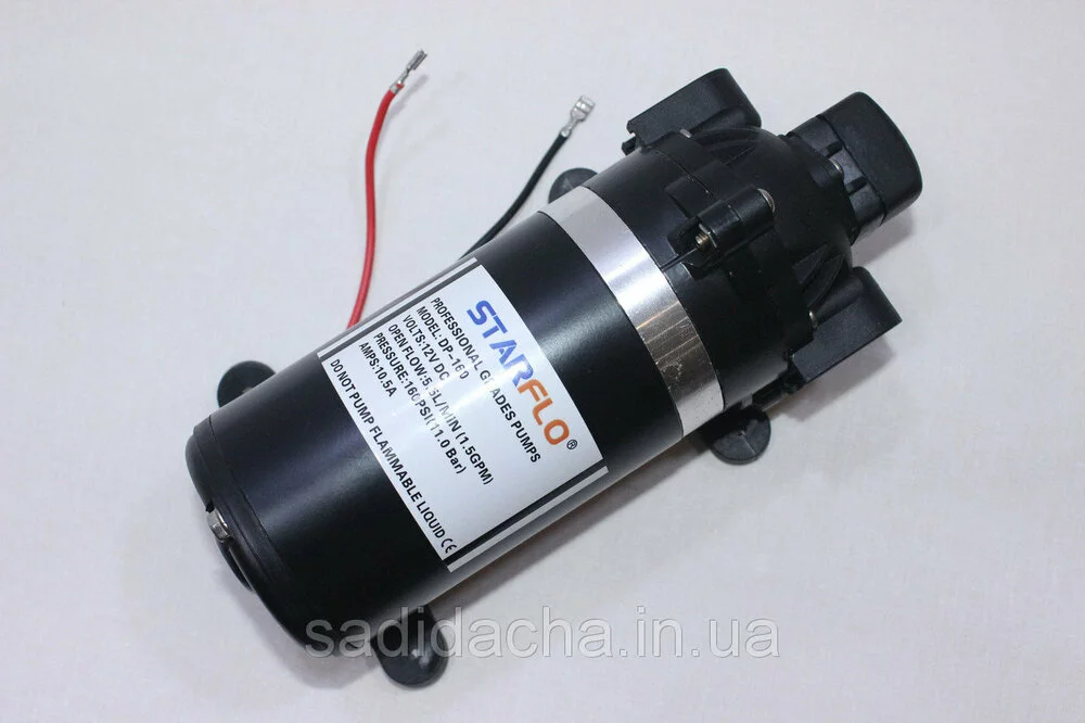 Мембранный или диафрагменный насос высокого давления для воды с фильтром 12 вольт 10,5 ампер. Предназначен для перекачивания жидкостей, для повышения давления в системах, для систем отопления фильтрации и дозирования. Диафрагменный насос оснащен самозакачиванием и может работать в "сухом режиме" кратковременно без поломки. При достижении установленного давления 10,3 бар насос отключается при спаде давления до 9,7 бар происходит самозапуск. Насос необходимо устанавливать с фильтром, что увеличивает срок службы.