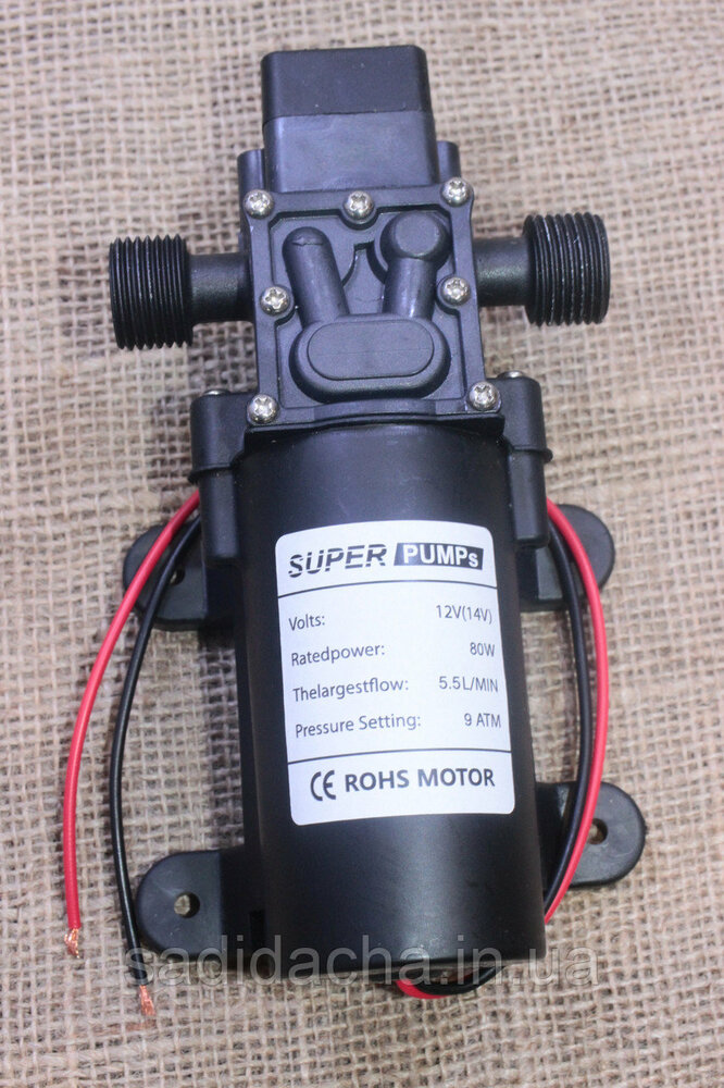 Насос высокого давления для воды 12 вольт 80 ватт 1/2 дюйма. Самовсасывающий насос для опрыскивателей для подачи воды, моек и умывальников. Перекачка жидкостей спектр применения широк.