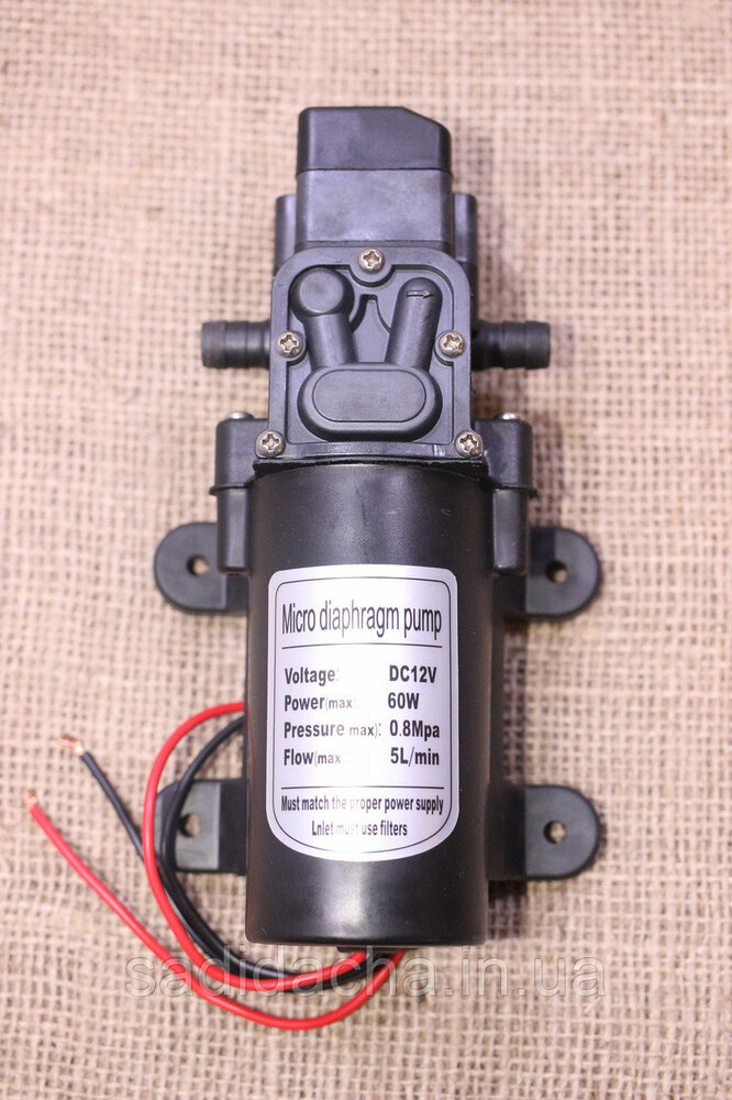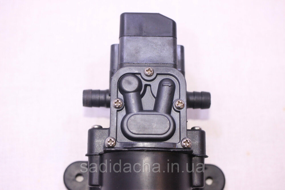 Мембранный насос высокого давления 12 в мощностью 60 Вт. С датчиком давления при достижении максимального давления насос выключается, при спаде давления происходит самозапуск.