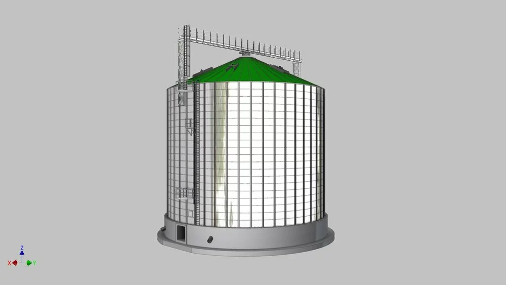 Металлические силоса с плоским дном RIELA для хранения зерна, комбикорма и других сыпучих кормов.