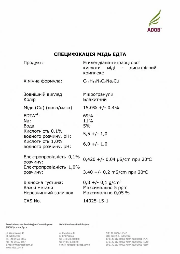 Микроудобрение Хелат меди ADOB Cu EDTA 15% (Польша)