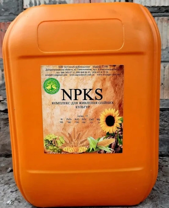 Улучшенный комплекс для питания масличных культур – "NPKS" с содержанием азота, фосфора, калия, серы, марганца и цинка, что способствует повышению урожайности и качественных показателей зерна.