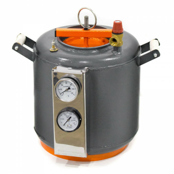 Наявність манометра і біметалевого термометра дозволяє повністю контролювати процес стерилізації. Дерев'яні ручки оберігають руки від опіків.