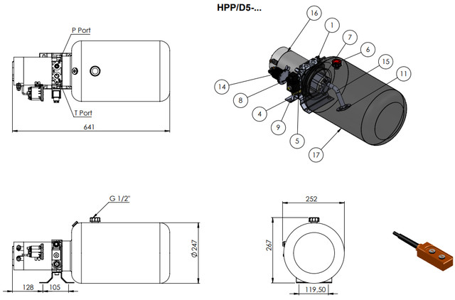 Мини-маслостанция HYDRO-PACK HHP/D5-4766 предназначена для работы с подъемом кузова. Она оснащена электромотором мощностью 3.7 кВт и работает при напряжении 12 В DC, скорость вращения 2500 об/мин, максимальное рабочее давление до 100 бар. Насос станции имеет рабочий объем 3.7 см3/об. Масляный бак объемом 18 л выполнен из стали и имеет цилиндрическую форму. Устройство устанавливается в горизонтальном положении.