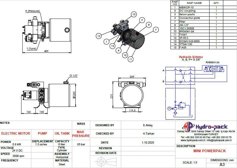 Маслостанция HIDROS  24V-0,8kW 1,3CM³ 6L для двухходовых цилиндров представляет собой эффективное решение для гидравлических систем. Оборудование оснащено мотором DC-24V-0,8kW-3500, обеспечивающим 0,8 кВт мощности при напряжении 24 В. Модель MBVOP-10, снабженная насосом 10C1.3х302, обеспечивает стабильную скорость вращения на уровне 3500 об/мин. Резервуар объемом 6 л предоставляет достаточный запас масла для надежной работы системы.