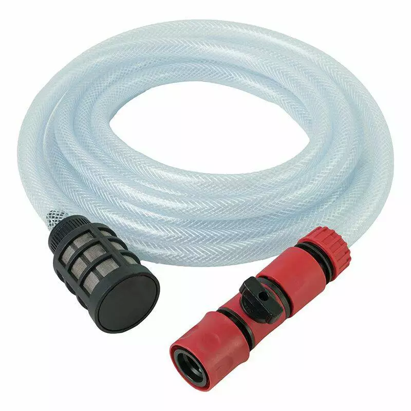 • Завдяки 5-метровому шлангу та можливості забору води з будь-якої ємності ця мийка чудово підходить для роботи в місцях без централізованого водопостачання.