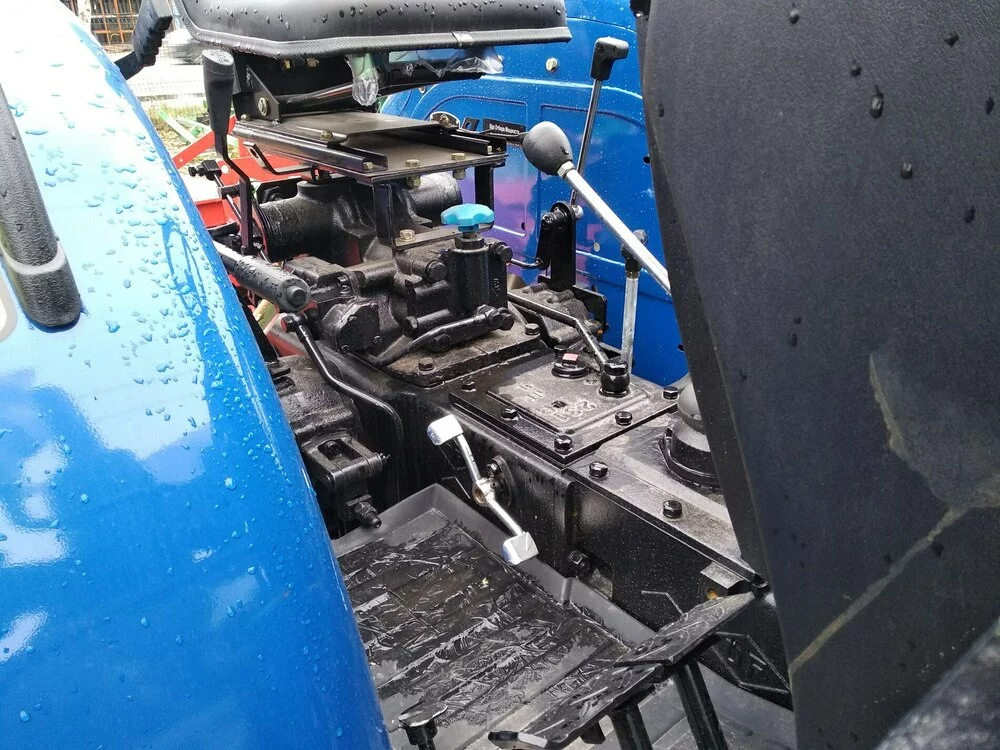 Идеальные характеристики работы гидроусилителя руля и гидросистемы трактора поддерживают два гидронасоса. Установлено двухдисковое сцепление, блокировку дифференциала заднего моста, гидропару. В обеспечении отличных тягово-скоростных характеристик и оптимальной нагрузки на силовой агрегат в разных условиях работы функциональную ответственность несут усиленная навесная система (рычаги задней навески с двухточечным креплением), механический догружатель задних ведущих колёс, переднее и заднее (с регулировкой по высоте) прицепные устройства, шины широкого профиля (передние 7,50-16, задние 12,4-24). Есть проставка для крепления фронтального погрузчика. Разборные задние и вогнутые передние диски колёс позволяют менять колею.
