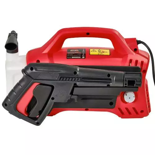 Зручний для роботи пістолет забезпечений механізмом швидкого підключення шлангу високого тиску. Насадка на пістолет дає змогу регулювати форму напірного струменя.