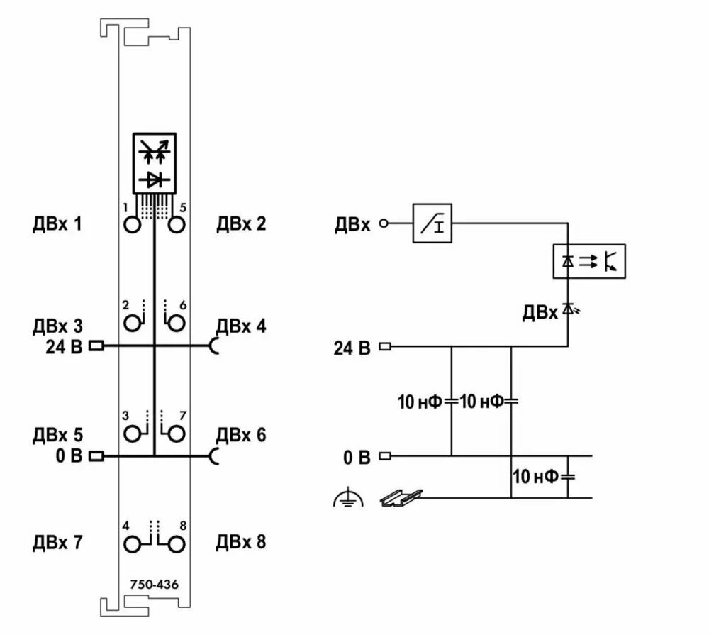 Модуль 8 дискретных входов 750-436 WAGO