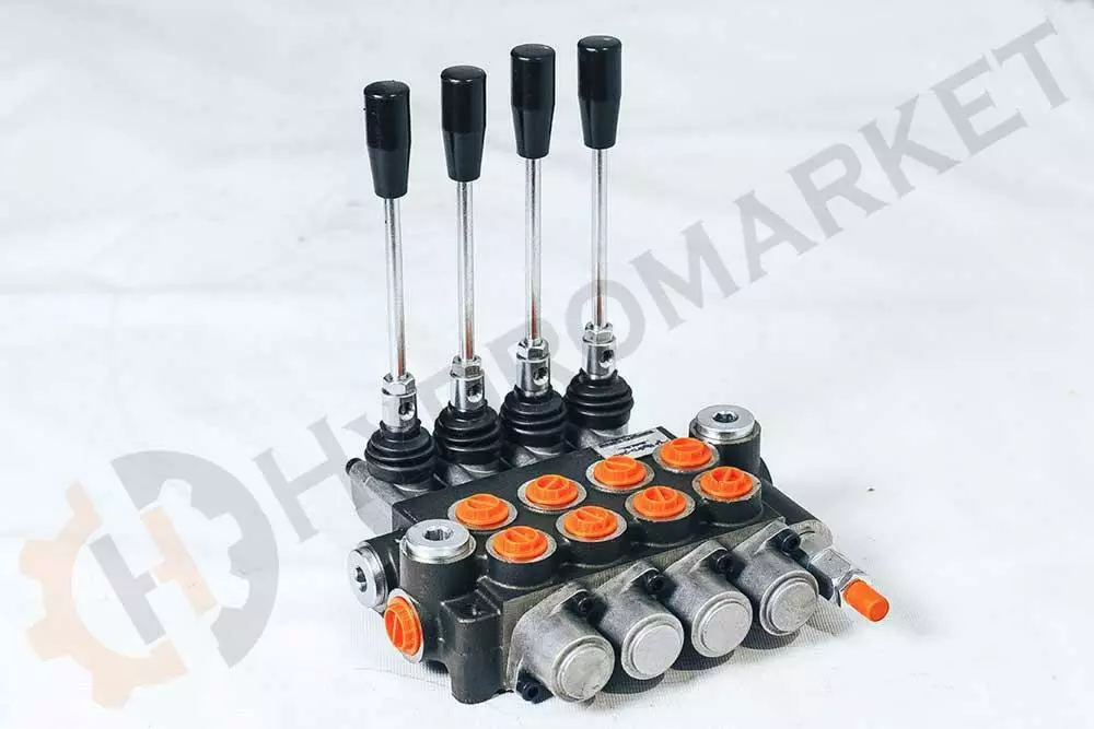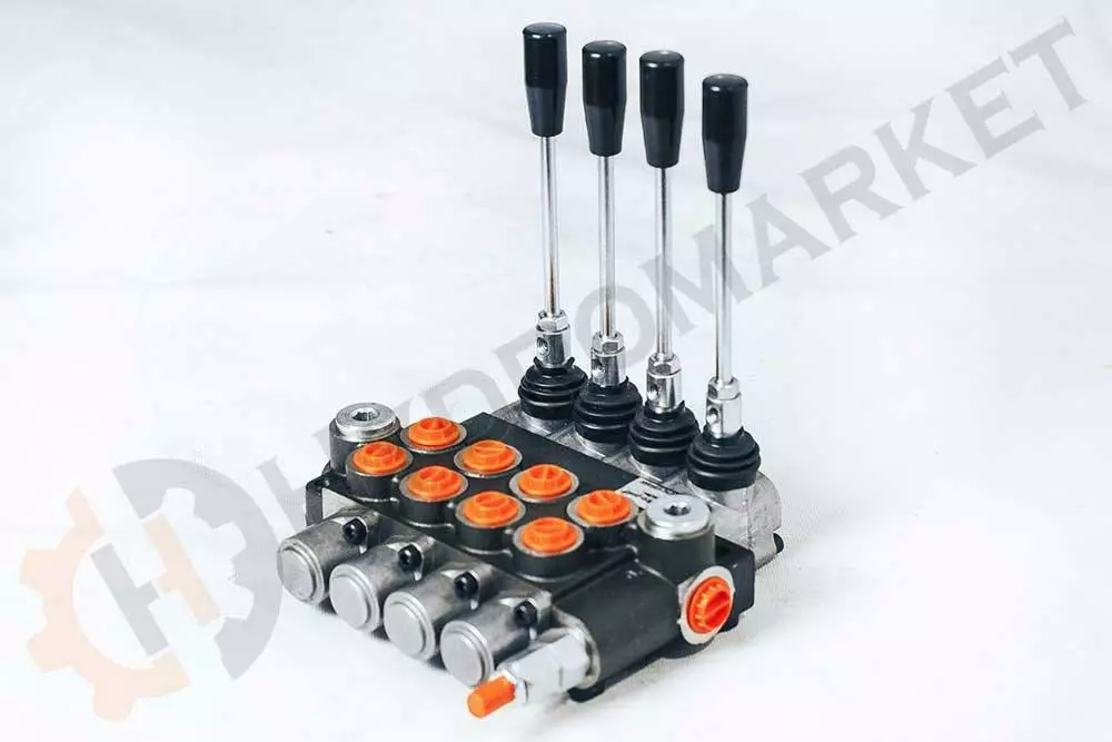 Моноблочный гидрораспределитель - дивертор  4p40 служит для пуска, остановки и контроля за расходом рабочей жидкости между генераторами напорного потока (гидравлические насосы) и потребителями рабочего потока жидкости (гидроцилиндры, гидромоторы). Моноблочный распределитель - дивертор  4Р40 с ручным управлением золотниками. Золотники при помощи рукоятки управляют потоком жидкости в трех позициях. Золотники центрируются в среднем положении пружиной без фиксации в крайних положениях.