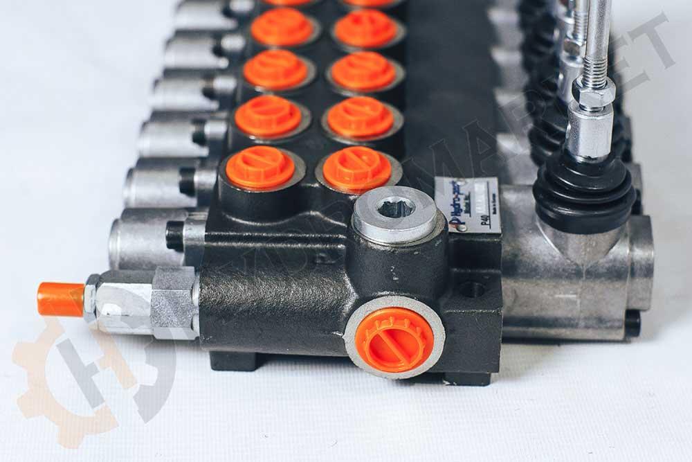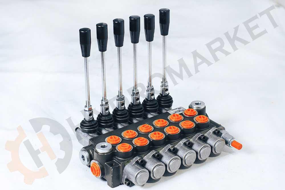 Моноблочный гидравлический распределитель - дивертор 6Р40 с ручным или механическим управлением, предназначен для изменения направления потока и ограничения давления рабочей жидкости в гидравлических линиях, разгрузки насоса в нейтральной позиции золотников. Золотники при помощи рукоятки управляют потоком жидкости. Моноблочные распределители - диверторы Badestnost 6р40 с ручным управлением золотниками, имеют один общий литой корпус с размещенными в нем параллельно друг другу золотниками (возможное количество золотников от 1 до 7) и предохранительным клапаном.