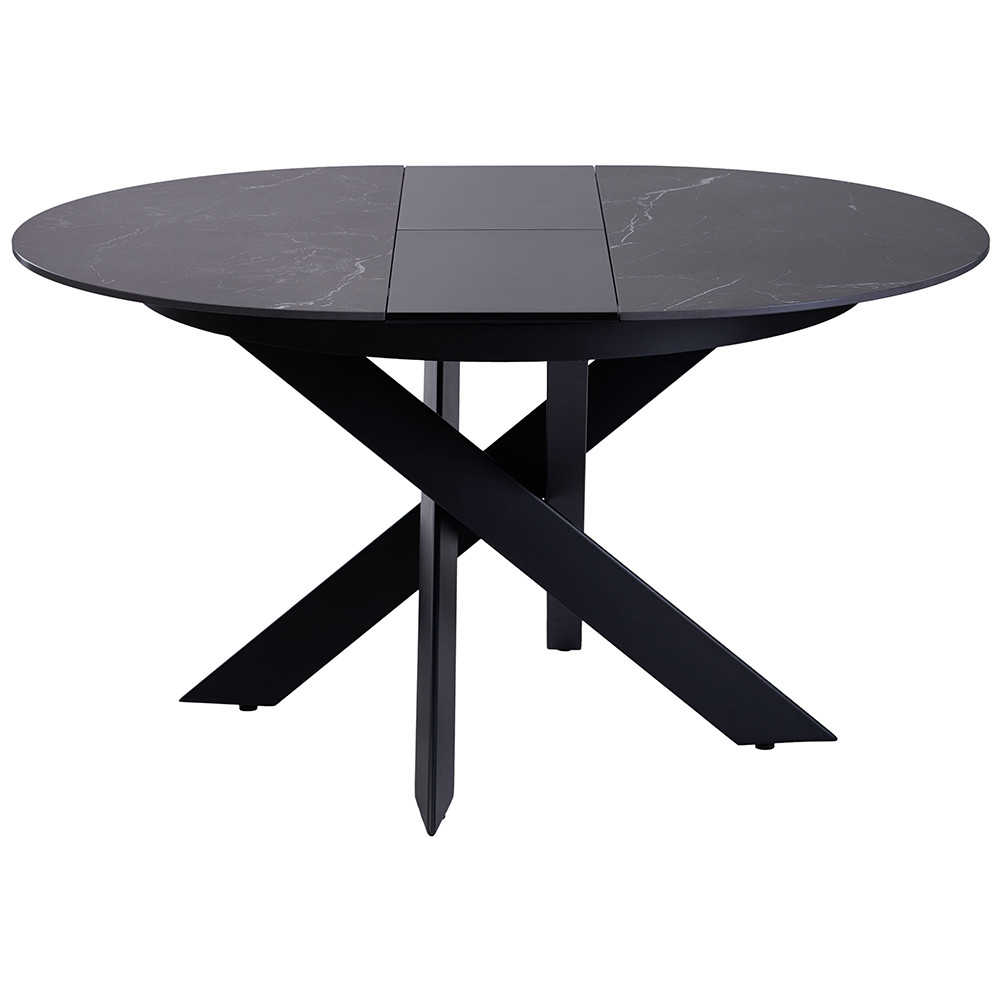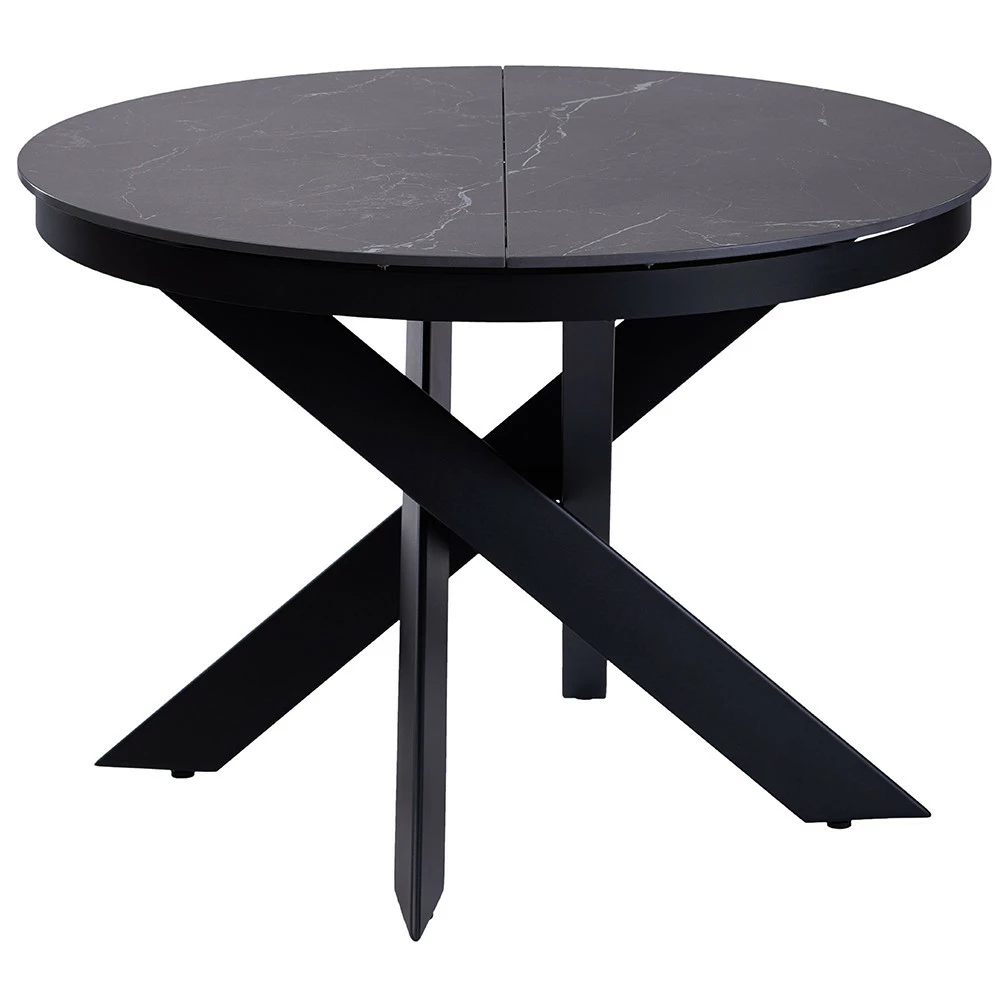 Стол раскладной Moon Black Marble керамика 110-140 смАргументированно один из самых красивых предметов интерьера в нашей коллекции столов. Главная особенность стола - раздвижной механизм, который позволяет при необходимости увеличить полезную площадь столешницы на 30 см. Это очень удобно для помещений, где нет возможности поставить большой обеденный стол, но при этом нужно время от времени размещать на несколько человек больше. Устойчивое основание из металла имеет оригинальную форму и универсальный серый цвет. Прекрасно исполненный стол для вашей кухни, будет радовать вас своим прекрасным видом и отличным качеством.Столешница: керамикаСтолешница сделана из керамической плиты с прожилками, имитирующей рисунок натурального камня. Каждый стол уникален благодаря рисунку керамической столешницы. Керамическая плита имеет толщину 11 мм. Одним из основных достоинств является повышенная устойчивость к царапинам и истиранию. Столешница из керамики устойчива к перепадам температуры и химическому воздействию. Её легко чистить, она очень гигиенична, так как не впитывает жидкости и не выделяет вредных веществ. Дополнительные панели сделаны из МДФ.Подробнее:универсальный современный стиль;высокая функциональность;раздвижной механизм "бабочка";стол раскладывается очень легко, в три движения;
