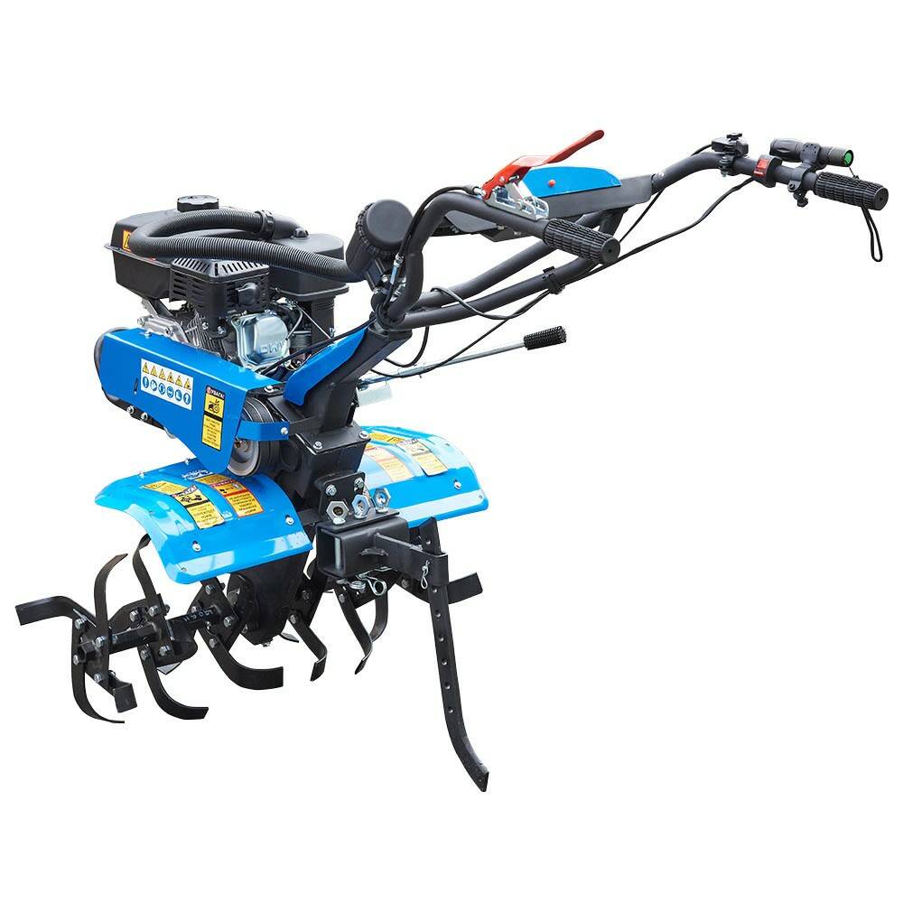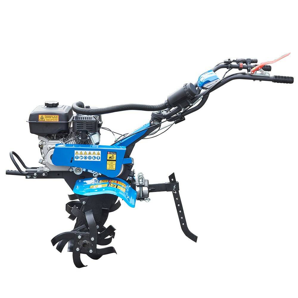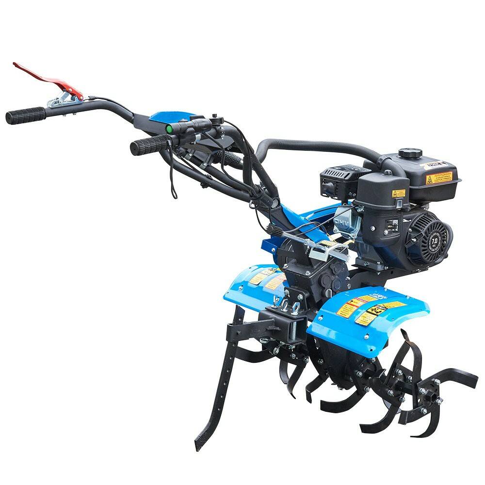 Тепер перейдемо до розгляду конструкції мотоблока. Бензинового двигуна потужністю 7 к.с. цілком вистачає для культивації багатьох типів ґрунтів, за винятком кам'янистих. Навіть якщо в ґрунті присутні рослинні залишки або бур'яни, вони без проблем подрібнюються роторною ґрунтофрезою. Головне – вчасно очищати ножі фрези.
