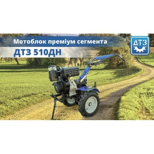 Основное отличие ДТЗ 510ДН от ДТЗ 570БН — это использование дизельного двигателя мощностью 10 л. с. В остальном они конструктивно и функционально очень похожи. Прямой привод коробки передач, через новое безопасное нормально разомкнутое сцепление. Блокировка рычага заднего хода от случайного включения. Наличие на транспортных колесах обгонных разблокираторов, которые значительно облегчают поворот и разворот мотоблока. Большие колеса 4.00-10 и 8-секционная фреза с максимальным захватом 1140 мм. При этом даже плотные почвы качественно разрыхляются на необходимую глубину за один проход.