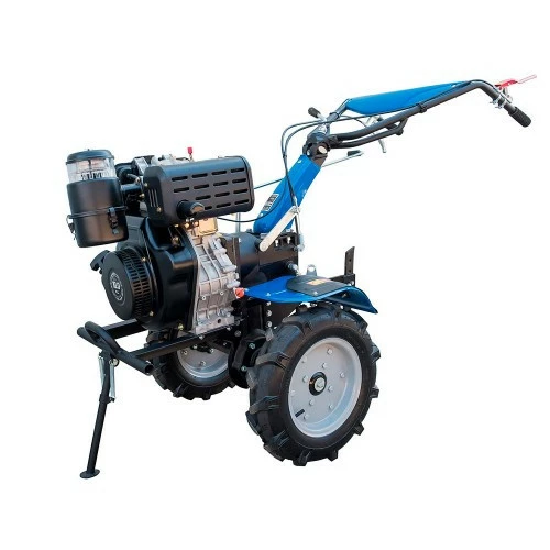 Дизельный двигатель ощутимо экономнее бензинового, лучше выдерживает длительную работу под нагрузкой, сохраняет высокий крутящий момент при снижении оборотов, а значит, и тягу. Он более долговечный и экологичный, не требует регулировки карбюратора и системы зажигания, для облегчения запуска при низкой температуре оснащен декомпрессором. Благодаря большему весу улучшается сцепление транспортных колес с дорожным покрытием или почвой. Этот мотоблок полностью подходит не только для работы в домашних хозяйствах, а и может профессионально использоваться на огородных, садовых и тепличных комплексах, а также как средство для перевозки грузов на специальном прицепе.