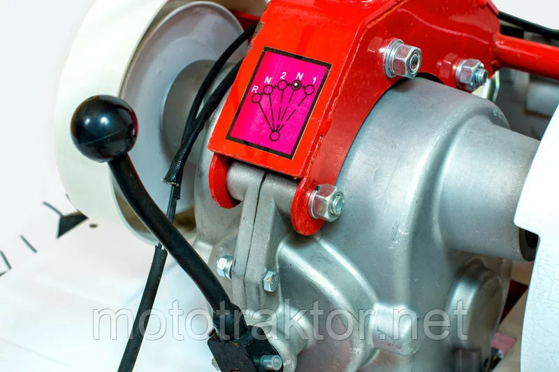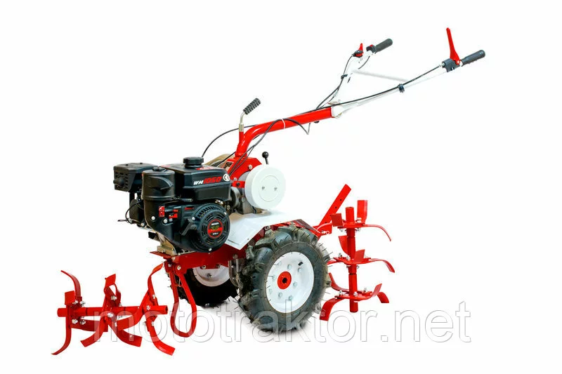 Бензиновый двигатель WM170F-2 мощностью 7 л.с. оснащен редуктором обратного вращения, так как в этом мотоблоке, в силу конструктивной особенности, приводные ремни находятся справа.