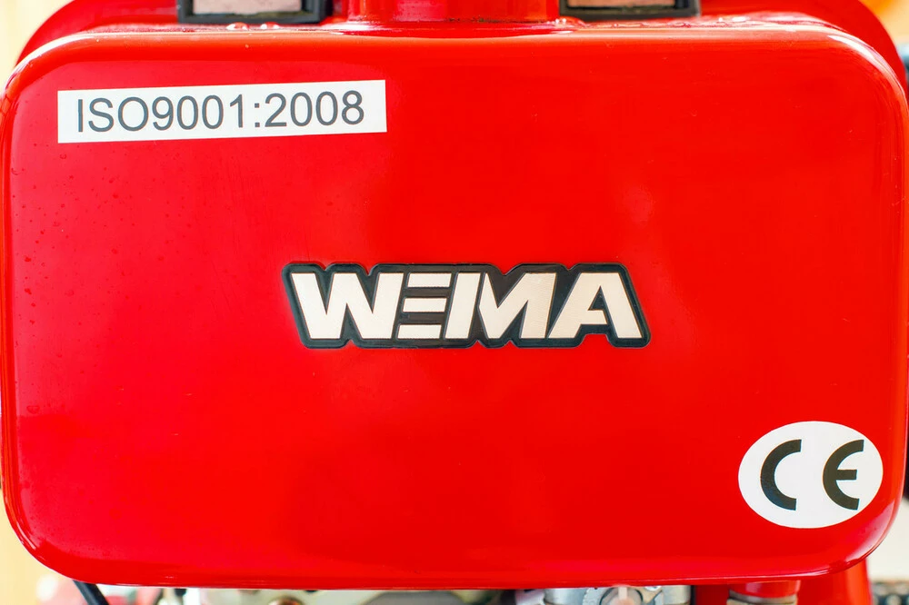 Мотоблок WEIMA WM1100A Бесплатная адресная доставка по Украине Мотоблок дизельный Weima 1100A — абсолютный аналог мотоблока Zirka IZ 105, модель рассчитана на тяжелые нагрузки, благодаря мощному шестеренчатому редуктору и многодисковому сцеплению. Основная достопримечательность этого мотоблока — профессиональный дизельный двигатель Weima WM178F, мощностью 6 л. с. Увеличенный моторесурс (до 3х тыс. моточасов), минимальный шум, уникальная надежность, рычаг аварийной остановки двигателя. Завод Weima является лидером по производству дизельных и бензиновых мотоблоков в Китае, на сегодняшний день — очень качественная сборка, литье, покраска, отличает их от других производителей. Данная модель оснащена надежной шестеренчатой коробкой передач и шестеренчатым редуктором конусной формы, который позволяет начинать более плавное движение при включении скорости. Многодисковое сцепление в масляной ванне и профессиональный шестеренчатый редуктор – это очень надежная деталь мотоблока, необходимая для работы на разных почвах. Мотоблок WEIMA WM1100A комплектуется наборными фрезами (3+1) шириной захвата 110 см, может работать с широким спектром навесного оборудования, в том числе, и роторной сенокосилкой КР-02 WEIMA, работающей от вала отбора мощности. В случае необходимости косить высокий травостой или сложные участки, мотоблок можно оборудовать роторной косилкой КР-01 WEIMA с ременным приводом через адаптер от ВОМа. Так же мотоблок очень легкий в управлении на транспортных работах.