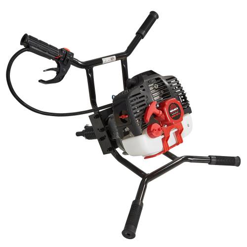 Оснащений бензиновим одноциліндровим двотактним двигуном, ручним стартером, редуктором для зменшення частоти обертів шнека, амортизатором для компенсації зайвих навантажень, а також автоматичною відцентровою муфтою зчеплення.