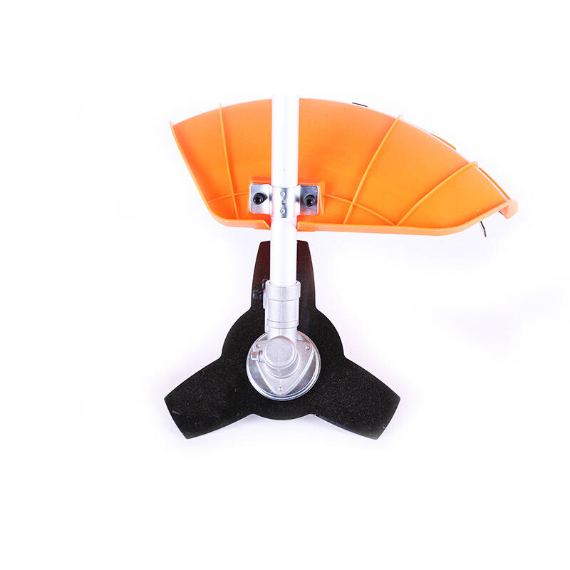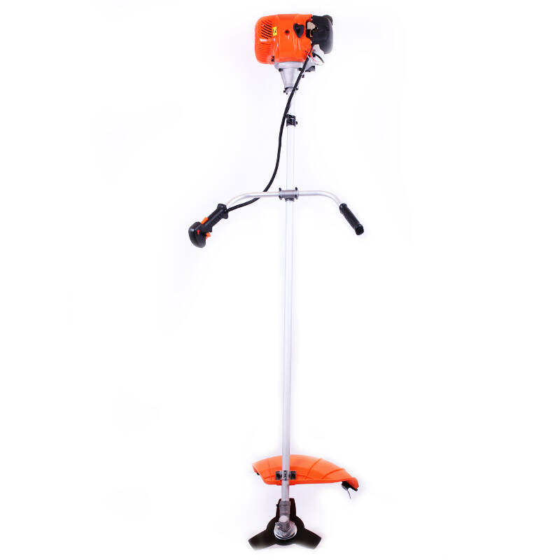 Модель имеет легкую систему управления с регулятором количества оборотов. А дисковой нож с легкостью справиться с высокой травой и мелкими кустарниками. Защитный кожух выполнен из качественного пластика, который эффективно защитит от травматизма твердыми предметами, которые могут отлететь во время работы.