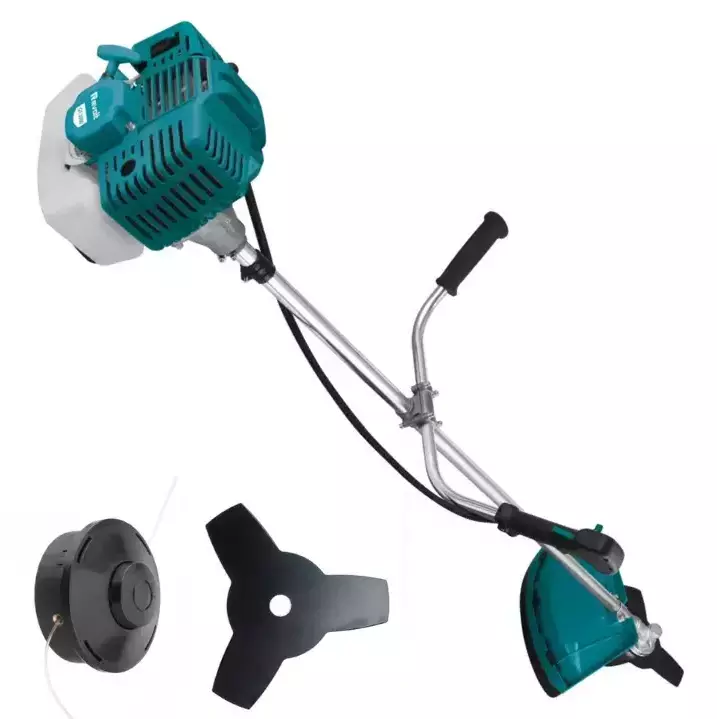 Потужна мотокоса з двотактним мотором потужністю 5.0 кВт оснащена всією необхідною комплектацією, а саме посиленою котушкою, победітовим і трилопатевим ножами. Проста і надійна мотокоса з потужним двигуном 52 см³ легко впоратися з кущами і травою. В комплекті вигнутий диск з победітовими напайками для скошування кущів і високої трави. За рахунок вигнутої форми диск меншою площею стикається з землею, зберігаючи при цьому ріжучі зубці і не втрачає високі обороти.