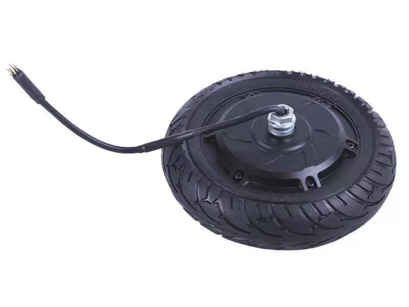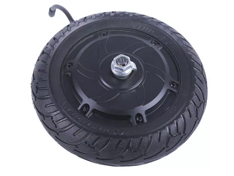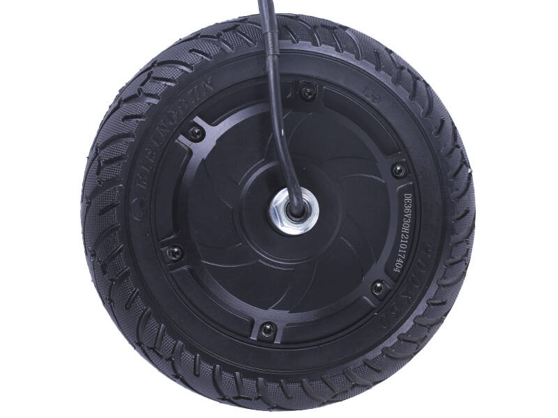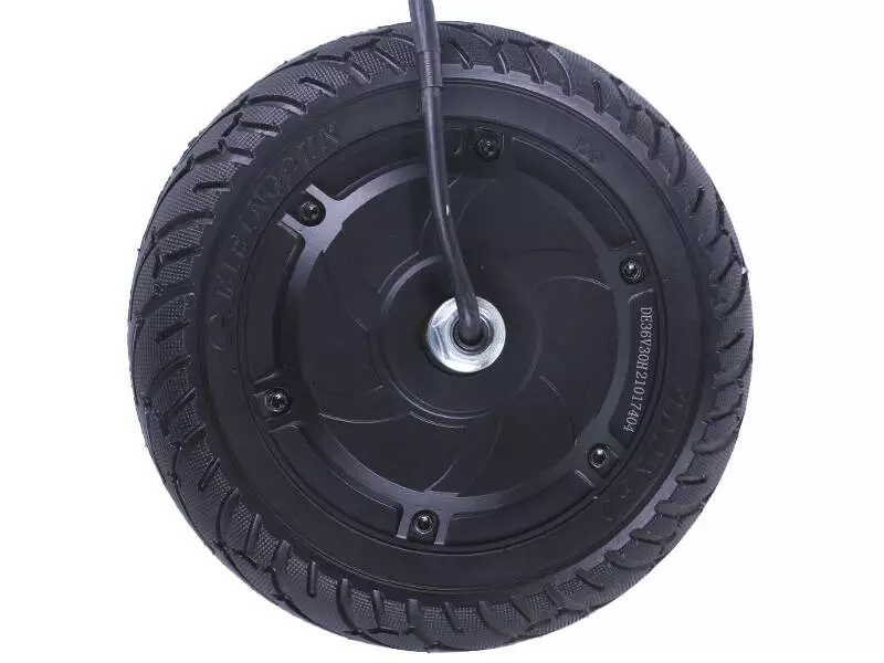 Мотор-колесо ТАТА на электросамокат S1 - приводной элемент электросамоката или иного транспортного средства на электрической тяге. Основа устройства представляет собой бесщеточный двигатель постоянного тока типа outrunner, т.е. на неподвижной оси закреплен статор с обмотками, а постоянные магниты расположены на внешнем роторе. Небольшой внешний диаметр колеса позволяет создать значительное усилие даже в отсутствии дополнительного редуктора. Резиновая покрышка с развитым протектором обеспечивает надежное сцепление с дорогой и отличную управляемость в поворотах. Мотор-колесо предназначено для работы с трехфазным контроллером и позволяет развивать значительную скорость благодаря большому крутящему моменту.