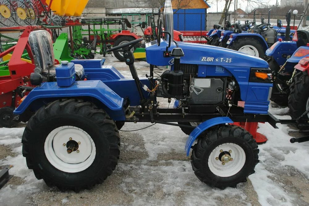 Малогабаритный и маневренный Zubr Т-25 при весе 790 кг характеризуется высокой проходимостью. Тягово-сцепные свойства определяют его пригодность для буксировки тракторных тележек грузоподъемностью до 1000 кг. Современное светотехническое оборудование повышает безопасность работы трактора в вечернее и ночное время.