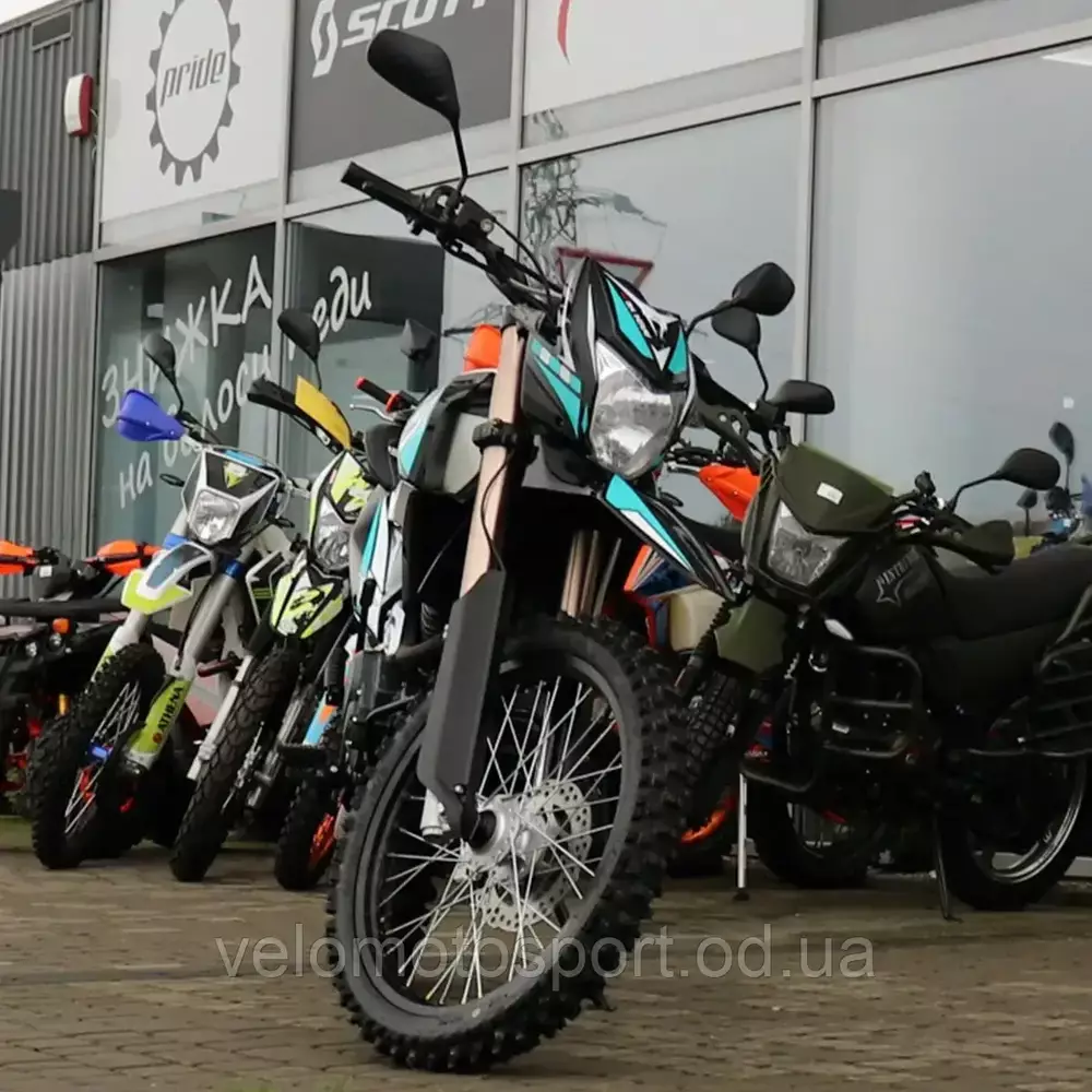 Передняя: Шина с развитым протектором размерности 80/100-21, Задняя: Кросс-шина размерности 110/100-18