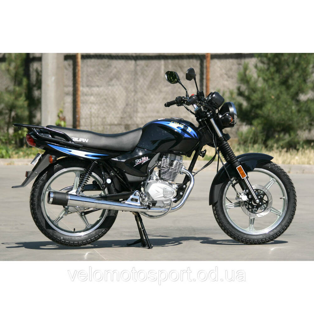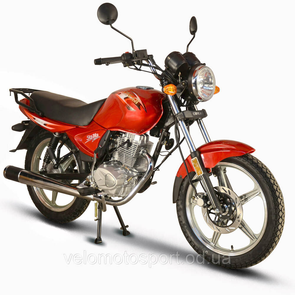 Мотоцикл Skybike BURN 150 куб. - Свою популярность он получил благодаря отличной надёжности, неприхотливости в обслуживании, а также лёгкости в управлении. Основной его плюс - это настройки коробки передач, они позволяют без пробуксовок трогаться с места на песчанике и других почвах с проблемным сцеплением с дорогой.Объём двигателя составляет 149 кубических сантиметров. На 100 км пути потребуется всего 2,5 л. бензина. Максимальная развиваемая скорость составляет 95 км/ч. На нём Вы можете ездить как в условиях городской среды, так и по грунтовым просёлочным дорогам, по лесным тропам. Пластик на мотоцикле только немного в задней части, поэтому при падении возможный ущерб минимален. Классическая круглая фара без излишеств, достаточно аскетична, но максимально функциональна. Большой механический спидометр отлично читается, доступна вся необходимая информация. ХАРАКТЕРИСТИКИ:
