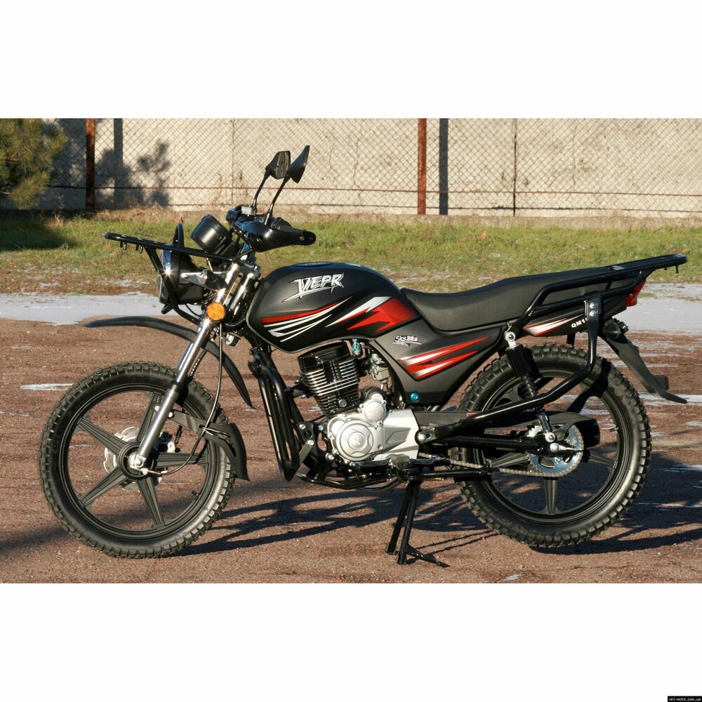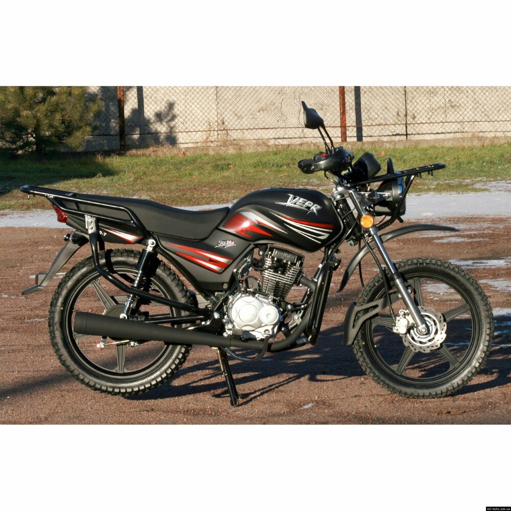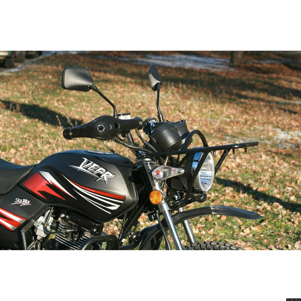 Мотоцикл Skybike VEPR-150 - лёгкий мотоцикл.Объём двигателя составляет 149 кубических сантиметров. На 100 км пути потребуется всего 2 л. бензина. Максимальная развиваемая скорость составляет 95 км/ч. Защитный бугель на фару, металлическая дуга для защиты ног водителя, удобные подставки для ног пассажира, дополнительный подкрылок на переднем колесе. ТЕХНИЧЕСКИЕ ХАРАКТЕРИСТИКИ: