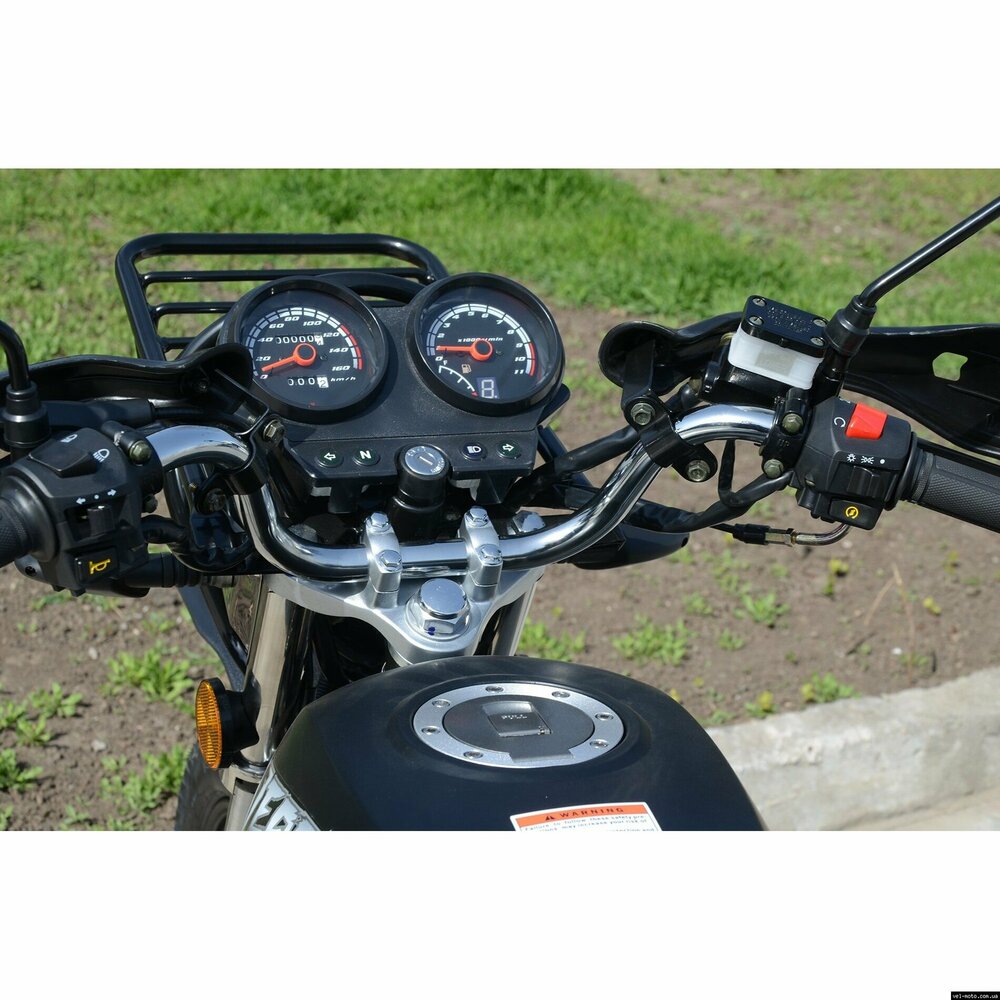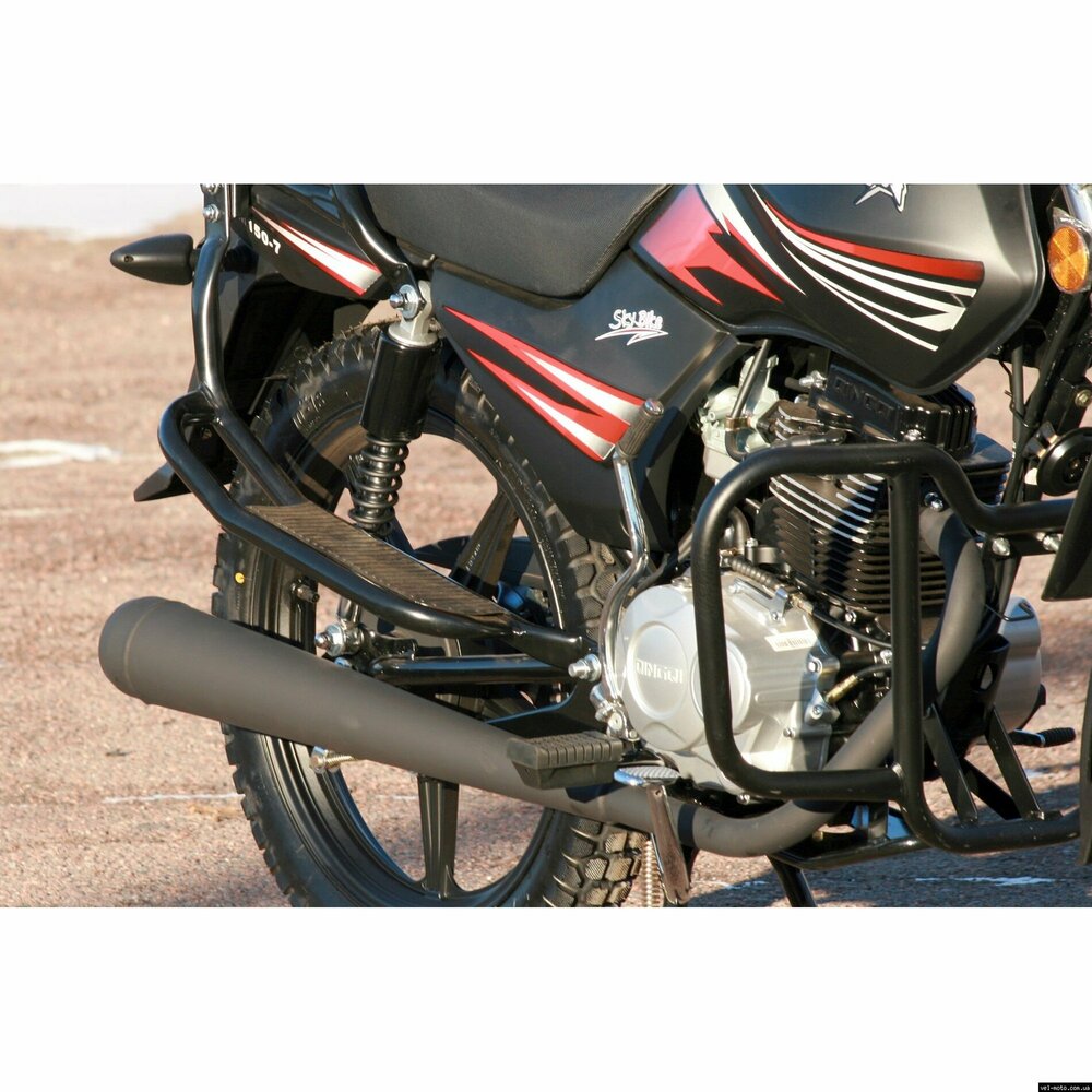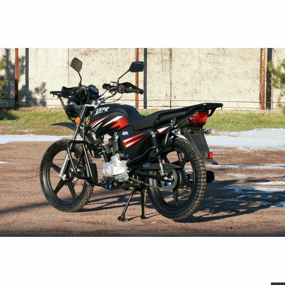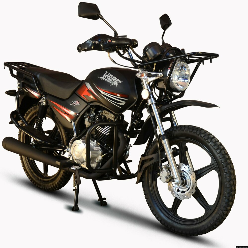 Мотоцикл Skybike VEPR-150 - лёгкий мотоцикл.Объём двигателя составляет 149 кубических сантиметров. На 100 км пути потребуется всего 2 л. бензина. Максимальная развиваемая скорость составляет 95 км/ч. Защитный бугель на фару, металлическая дуга для защиты ног водителя, удобные подставки для ног пассажира, дополнительный подкрылок на переднем колесе. ТЕХНИЧЕСКИЕ ХАРАКТЕРИСТИКИ:
