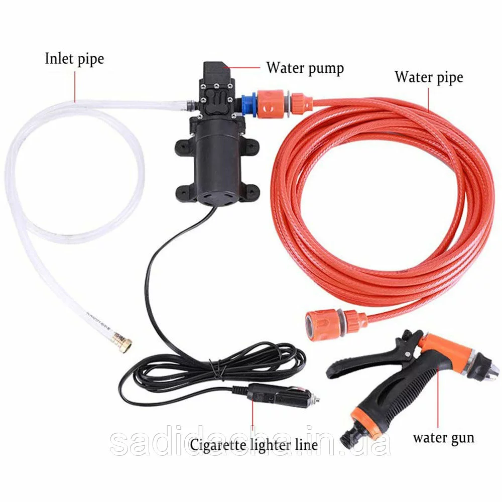 Автомобильная мини мойка 12 вольт от прикуривателя. Портативная контактная авто мойка. Можно мыть не только автомобиль но и велосипед, самокат и другой транспорт. Использовать в туризме брать на рыбалку, охоту. Регулируемая форсунка наконечник позволяет поливать огород.